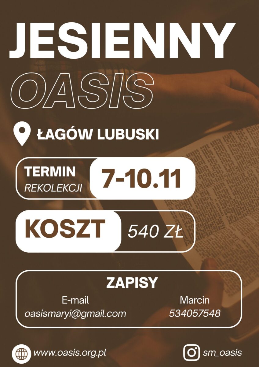 Kochani prosimy Was o wsparcie modlitewne i finansowe dla Oasis czyli Młodzieżowej Szkoły Życia. Formacja młodzieży to ważne i odpowiedzialne zadanie. Z pomocą Ducha Świętego,