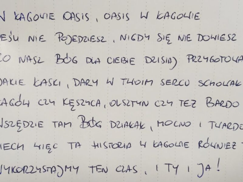 Trwają wakacje, odwiedzacie różne miejsca, odpoczywacie, spotykacie ciekawych ludzi. Prosimy aby w tym czasie towarzyszyła Wam modlitwa za Oasis – za uczestników, rodziców i animatorów.