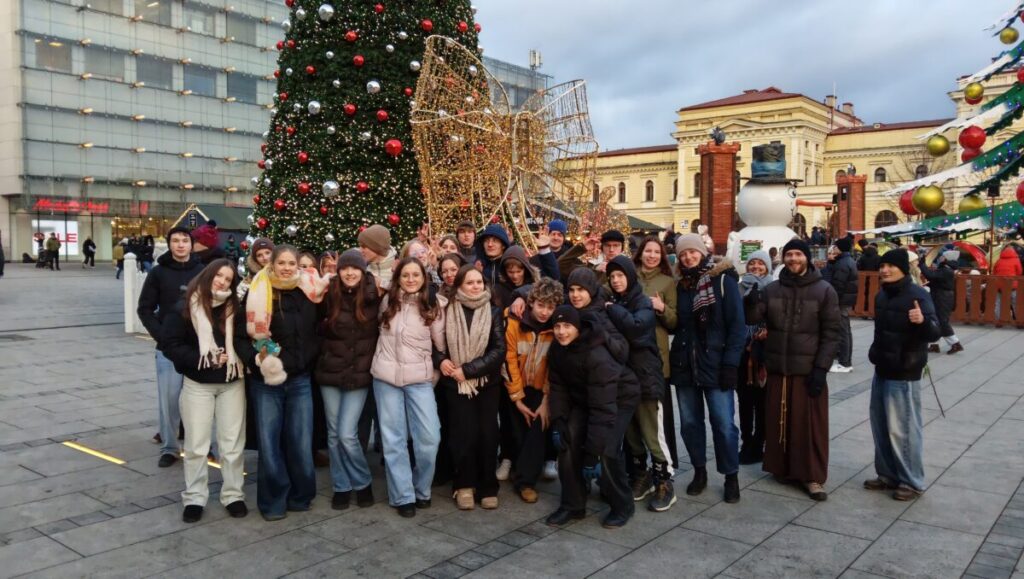 Podczas Oasisu sylwestrowego wybraliśmy się do centrum Krakowa. Odwiedziliśmy Pałac Krzysztofory, gdzie mogliśmy obejrzeć wystawę Szopek Bożonarodzeniowych oraz poznać historię miasta. Mieliśmy też okazję pospacerować po rynku i w mniejszych grupkach spędzić czas na jarmarku czy w kawiarni. Na koniec wspólnie jedliśmy pizzę w klasztorze kapucynów.